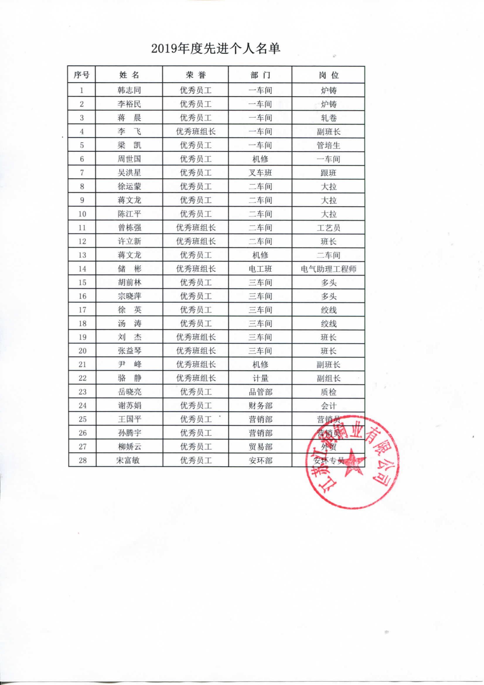 2019年度江潤銅業(yè)先進表彰