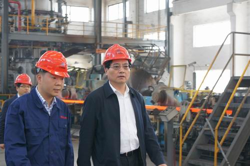 5月6日下午,無錫市委常委、常務副市長黃欽,宜興市委常委、常務副市長梅中華一行來江潤銅業考察。總經理駱偉棟陪同深入車間一線,詳細匯報了公司2014年一季度生產經營情況。